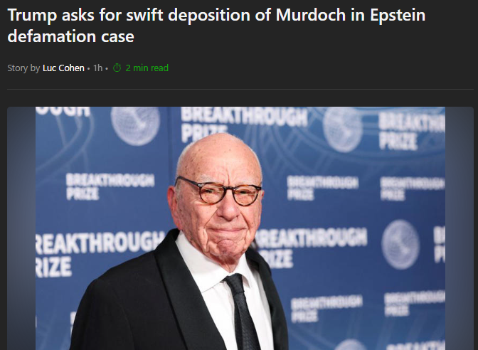 Các luật sư của ông đã yêu cầu Thẩm phán Tòa án Liên bang Hoa Kỳ Darrin Gayles tại Miami buộc Murdoch, 94 tuổi, phải ra làm chứng trong vòng 15 ngày. Thẩm phán Gayles đã ra lệnh cho Murdoch phải trả lời trước ngày 4 tháng 8.