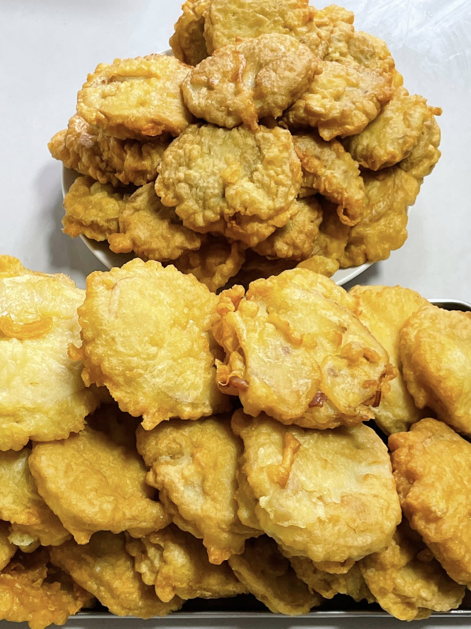 Cách làm món bánh củ sen kẹp thịt chiên: