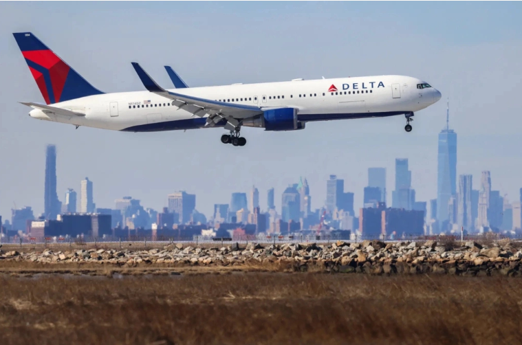 Máy bay Delta Air Lines hạ cánh tại sân bay quốc tế John F. Kennedy của Mỹ tháng 2/2024. Ảnh: AFP