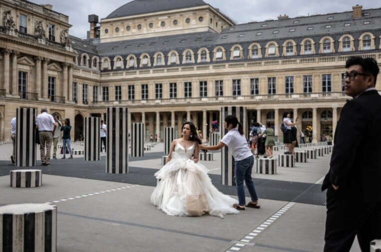 Cô dâu chụp ảnh cưới ở Paris, Pháp, tháng 8/2024. Ảnh: Guardian