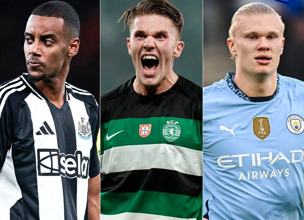 Lần lượt từ trái qua là Isak, Gyokeres và Haaland - những trung phong hàng đầu bóng đá châu Âu hiện nay.