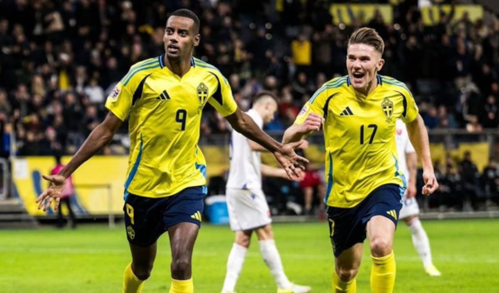 Isak (trái) và Gyokeres thi đấu cho đội tuyển Thuỵ Điển.