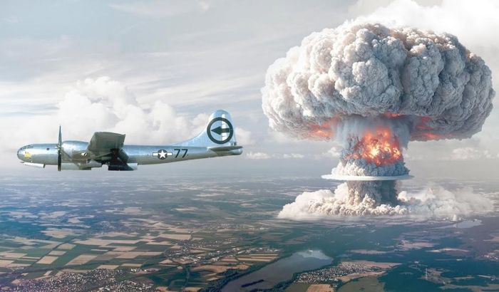 Oanh tạc cơ Mỹ ném bom nguyên tử xuống Nhật Bản vào cuối Thế chiến II, tạo ra đám mây hình nấm. Đồ họa: Science Time.