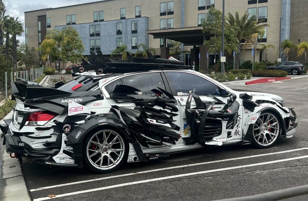 Chiếc Honda Accord màu trắng từng gây chú ý tại Arizona vào tháng 10/2024 với ngoại hình độc đáo. Xe trang bị nhiều cánh gió, bộ tách gió từ trước ra sau.