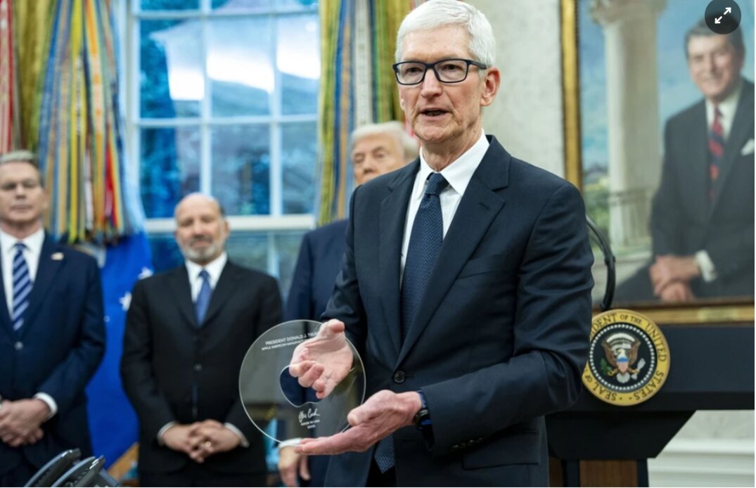 Đến Nhà Trắng, Apple đã đáp lại “tấm vé miễn thuế” bằng khoản đầu tư 100 tỷ USD và một tấm kính đế vàng 24K.