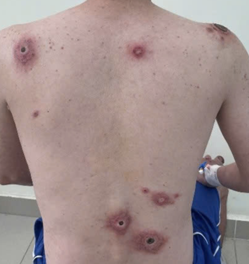 Trước đó, tại bệnh viện từng tiếp nhận nam bệnh nhân (26 tuổi) được chẩn đoán giang mai ác tính, đồng thời nhiễm HIV, sau khi đến khám vì tổn thương loét trên thân người.