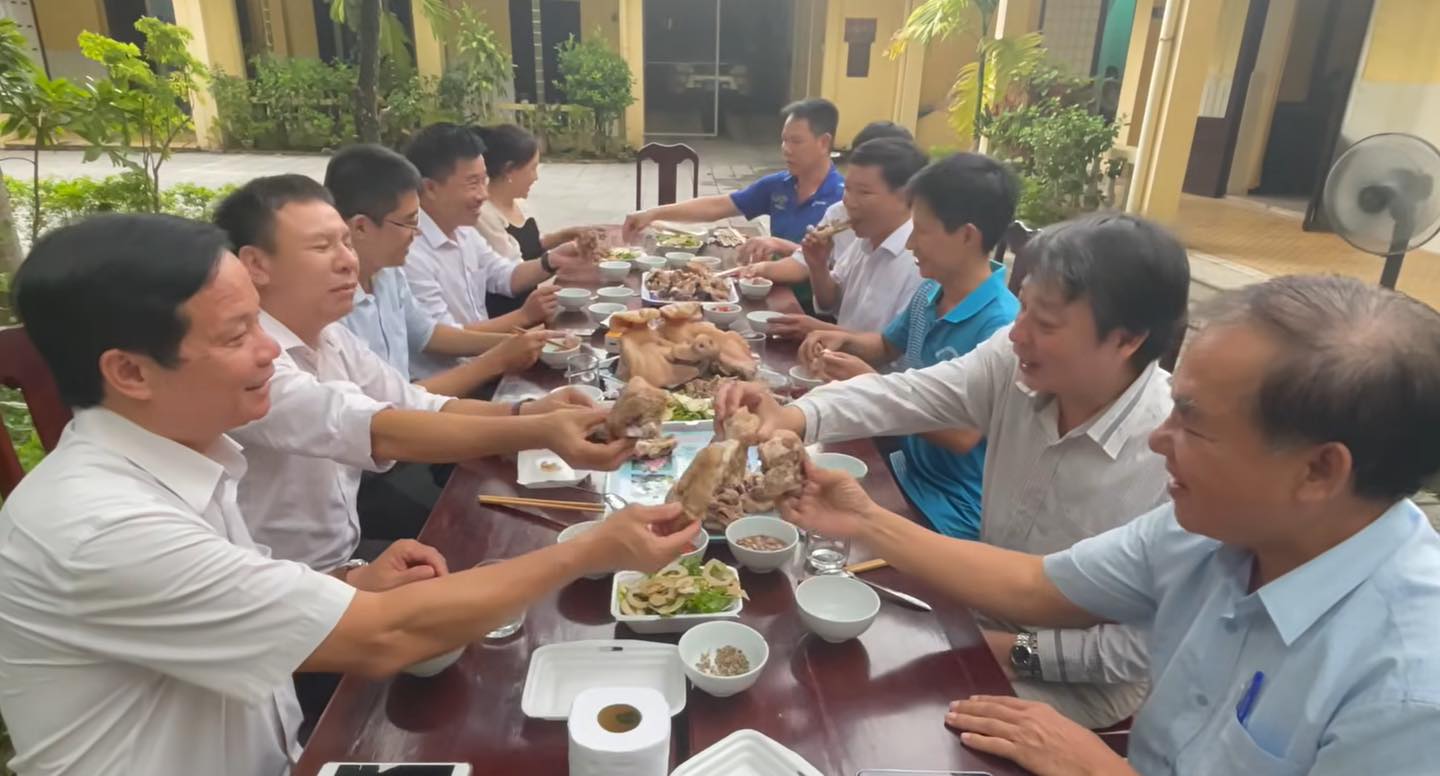Lănh đạo và nhân viên ngành thú y TP Huế đă tổ chức bữa ăn thịt heo "làm gương" trong thời điểm người dân quay lưng với thịt heo v́ lo ngại liên cầu lợn.