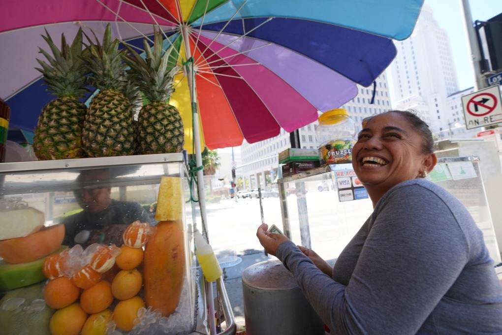 Một người dân mua thức uống làm mát cơ thể trong ngày nắng nóng ở Los Angeles hôm 19/8. Ảnh: AP