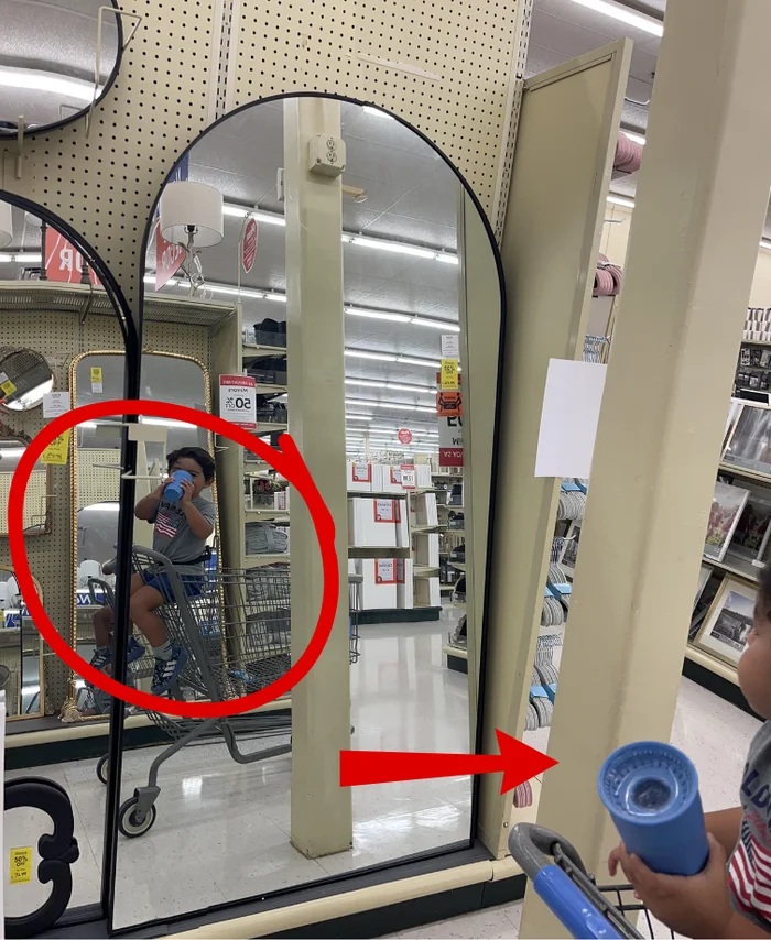 Dù chỉ là một buổi đi chơi công viên hay khoảnh khắc con phản ứng với sản phẩm trong siêu thị, những tấm ảnh này đều lưu giữ ký ức đặc biệt. Đi mua sắm cùng cháu trai 2 tuổi không ngờ rằng tấm ảnh chụp phản chiếu của bé trong gương lại khiến bà giật mình trước hình ảnh phản chiếu lại. Tuy nhiên, điều kỳ lạ là hình ảnh phản chiếu trong gương lại không trùng khớp với tư thế và hành động thực tế của cháu.