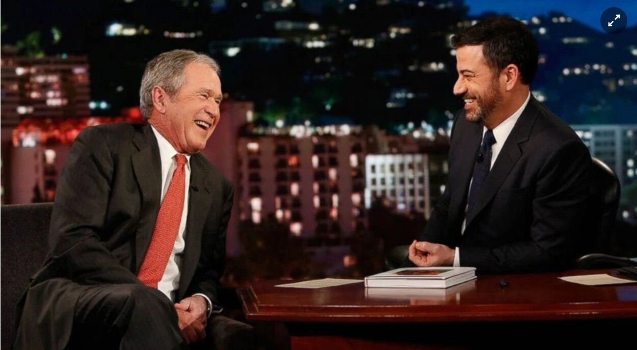 Cựu Tổng thống George W. Bush cùng người dẫn Jimmy Kimmel trong chương trình “Saturday Night Live”. Ảnh: NBC