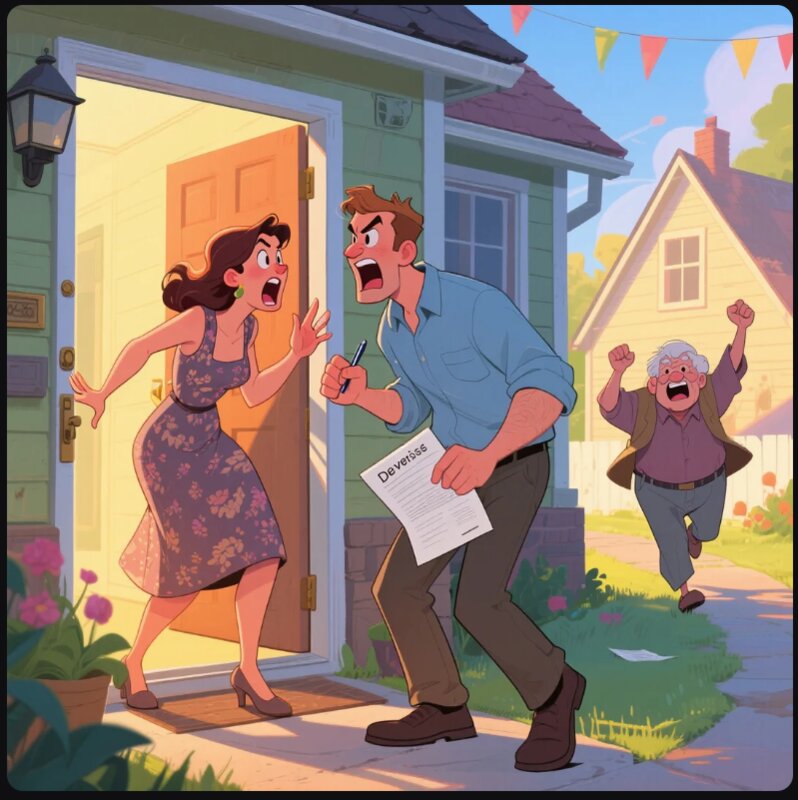 Đúng lúc đó, ông hàng xóm đang tưới cây gần đó nghe thấy, lập tức chạy sang, mắt sáng rỡ như vừa trúng số: – Anh chị ly đi! Cả làng này bỏ bô ăn mừng luôn!