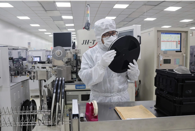 Một công nhân tại một nhà máy bán dẫn ở Tân Châu, Sơn Đông, Trung Quốc, ngày 15/1. Ảnh: Reuters