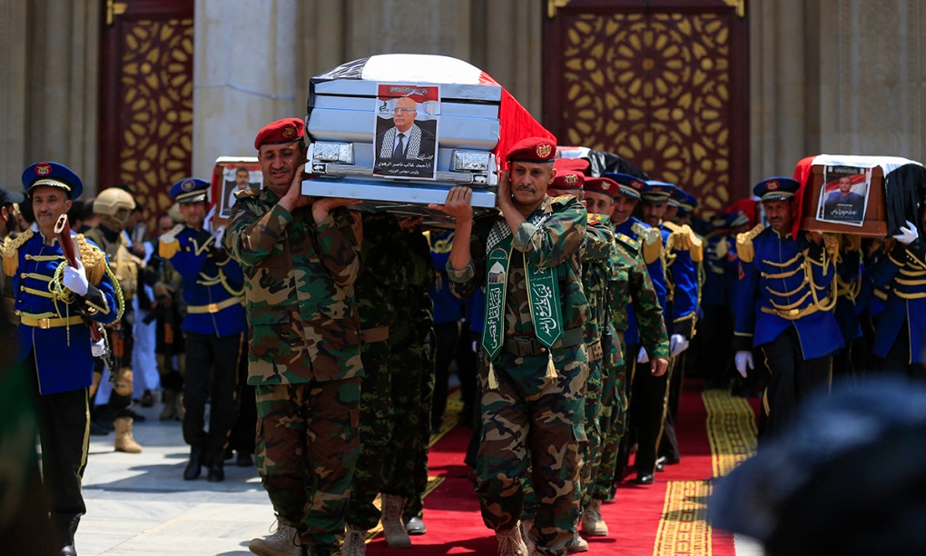Đội danh dự khiêng linh cữu các thành viên cấp cao của Houthi trong đám tang ngày 1/9 ở thủ đô Sanaa, Yemen. Ảnh: AFP