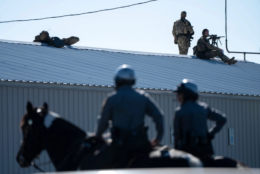 Các tay súng bắn tỉa của Mật vụ Mỹ khảo sát từ một vị trí cao trước khi ông Donald Trump phát biểu tại cuộc vận động tranh cử ở Butler ngày 5/10/2024. Ảnh: USA Today