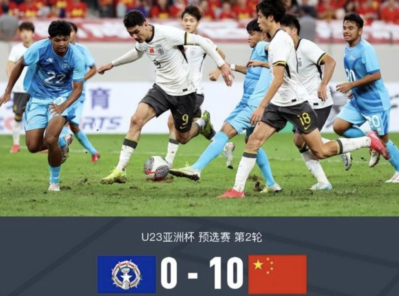 U23 Trung Quốc thắng 10-0 trong đó có 9 bàn ở hiệp 2.