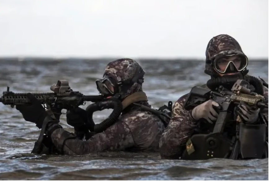 Nhóm lính SEAL phải lặn dưới nước biển trong khoảng 2 giờ để vào bờ, sử dụng thiết bị lặn và bộ đồ giữ nhiệt để sống sót.