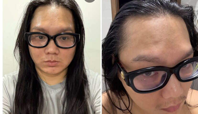 Trong loạt hình, nam TikToker sụt cân thấy rõ, da sạm đi, gương mặt có phần hốc hác. Anh cũng bị rụng nhiều tóc.