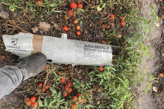 Mảnh vỡ tên lửa AIM-120C-7 AMRAAM tham gia đánh chặn UAV của Nga trong không phận Ba Lan. Ảnh: Dariusz Stefaniuk