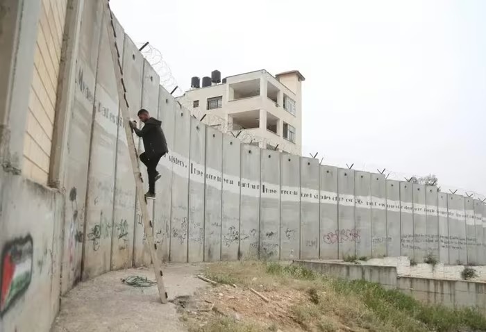 Một người Palestine từ Bờ Tây tìm cách vượt qua bức tường an ninh của Israel. Ảnh: Anadolu