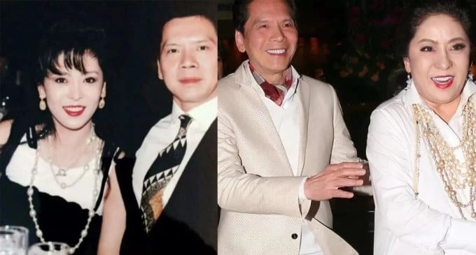 Bà Trần Lam và ông Hướng Hoa Cường thời trẻ (ảnh trái) và hiện tại (ảnh phải). Weibo.