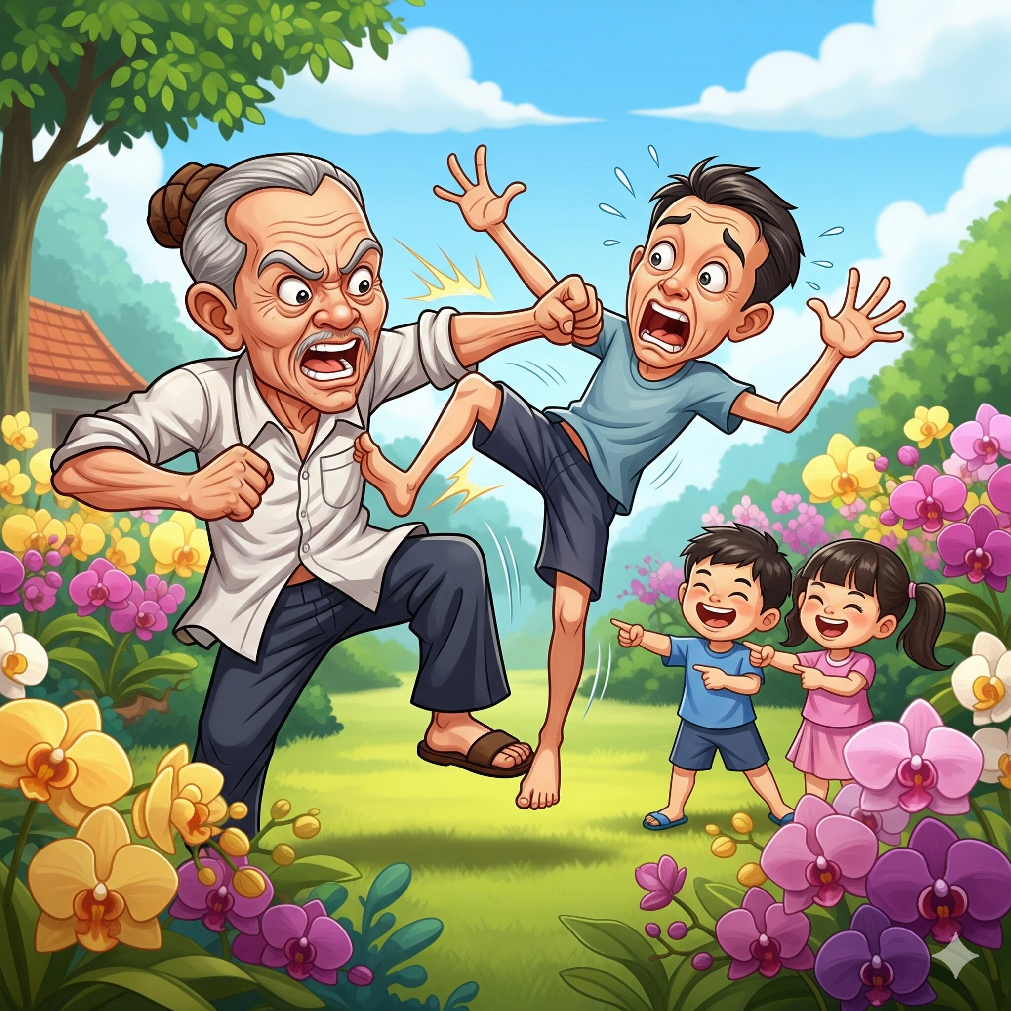 Ông bố vợ tôi nhanh nhẹn tự mở cổng, túm ngực áo thằng con rể đang coặt kẹo dặt dẹo dúm dó vì đòn nhấc lên lôi sềnh sệch vào nhà. Phải nói ông bố vợ tôi khoẻ thật. Gần bảy sọi mà những quả đấm, những cú đá của ông chẳng khác thanh niên. Cái thằng tôi chưa đến bốn sọi nhưng lâu lắm rồi không rèn luyện chỉ ham nhậu nhoẹt trác táng nên mất hết sức lực. Tôi như con sứa bấy bậy trong tay ông bố vợ.