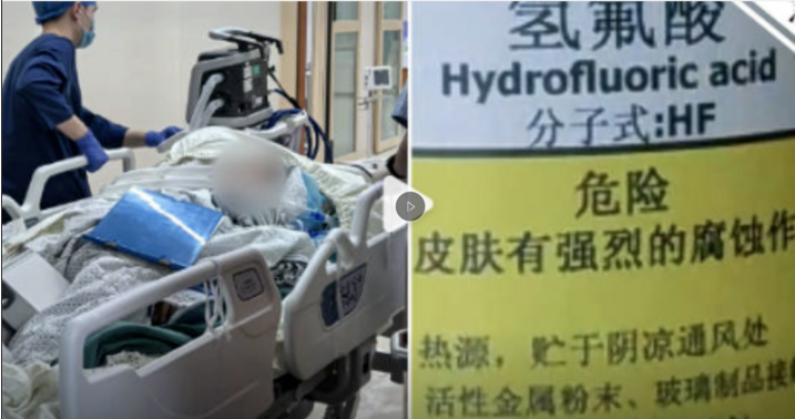 Theo Red Star News và The Paper, nạn nhân được đưa đi cấp cứu với chẩn đoán tổn thương do axit flohydric. Bác sỹ điều trị nhớ lại rằng khi đến bệnh viện, bà đã bị suy đa tạng và mất cân bằng điện giải, tiên lượng rất xấu, rất ít hy vọng sống sót. Do diện tích tiếp xúc lớn, bệnh nhân qua đời vào ngày 14/9.