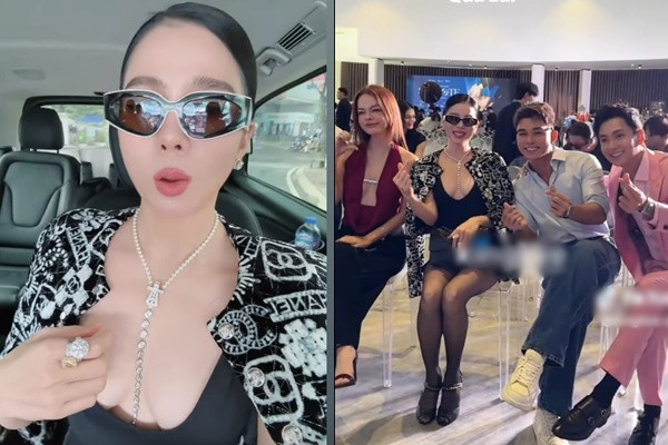 Điều khiến dân tình chú ý hơn cả chính là bộ trang sức kim cương lấp lánh trên cổ và tay của người tình Lâm Bảo Châu. Vốn nổi tiếng là đại gia ngầm Vbiz về độ chịu chơi hàng hiệu nên ước tính set đồ đi họp báo của Lệ Quyên sương sương bạc tỷ.