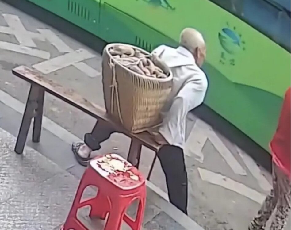 Mới đây, trên một diễn đàn trực tuyến Trung Quốc lan truyền đoạn video gây chú ý, ghi lại cảnh một cụ ông tóc bạc, chống gậy, mang theo chiếc giỏ nặng ngồi chờ xe buýt.