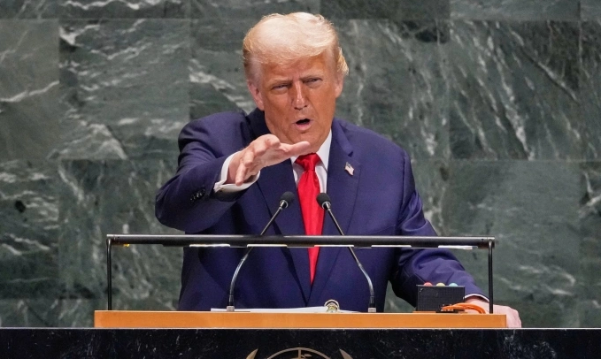 Tổng thống Mỹ Donald Trump phát biểu tại phiên họp của Đại hội đồng Liên Hợp Quốc ngày 23/9. Ảnh: AP