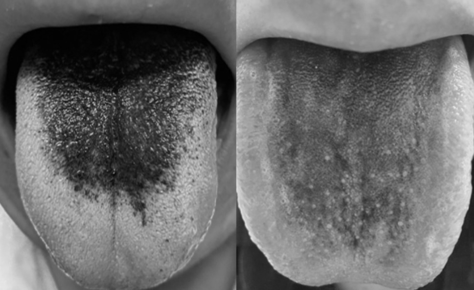 Hình ảnh lưỡi đen bất thường trên hai người bệnh. Ảnh: Bệnh viện cung cấp