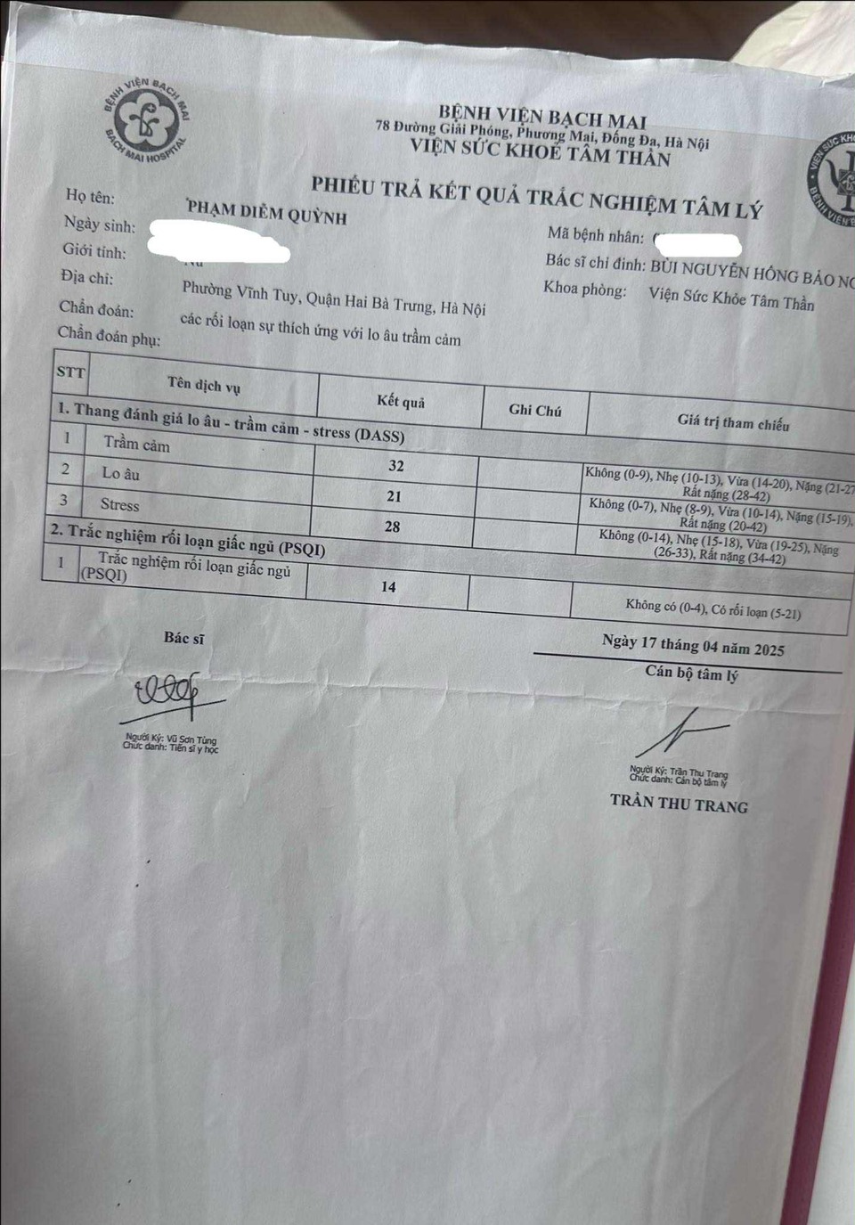 Vi bằng được Diễm Quỳnh liên hệ luật sư tạo vào ngày 12/5. Sự việc khiến cô bị trầm cảm. Ảnh: NVCC.