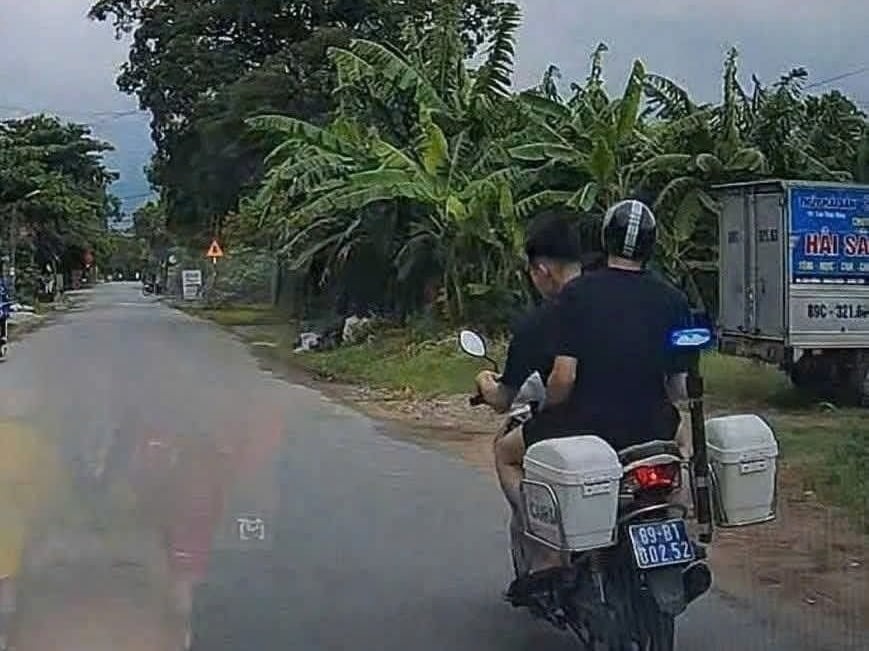 Khoảng 11h, thợ sửa xe sau khi hoàn tất đã lái phương tiện ra đường chạy thử, chở thêm một người, người lái xe không đội mũ bảo hiểm.