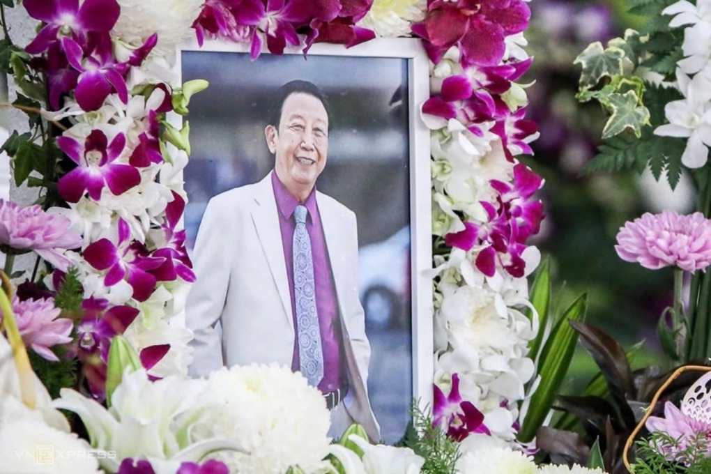 Di ảnh nhạc sĩ Thế Hiển ở lễ tang. Ông qua đời ở tuổi 70. Ảnh: Phùng Tiên