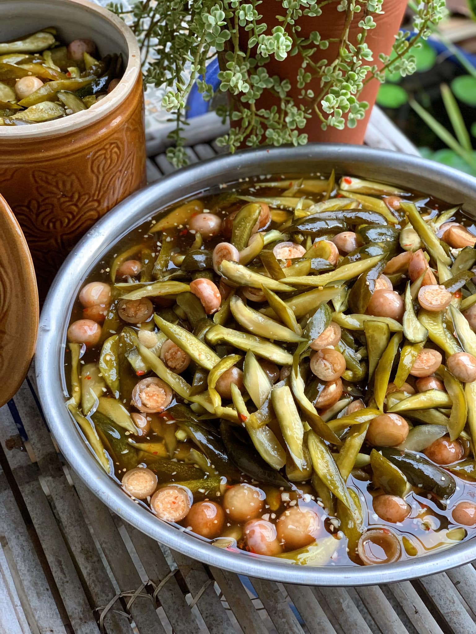 - Đổ nước muối chua vào hũ, đậy nắp, để yên tới chua là được, bước này có thể từ 1-3 ngày tuỳ vào tay nghề của người muối.