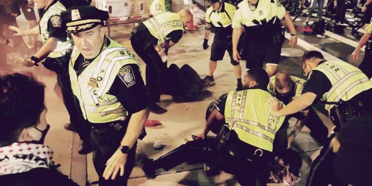 “As violence escalated,” police said, more officers were deployed while agitators “continued to resist dispersal.” In total, four officers ended up needing medical treatment for injuries ranging from facial trauma to other assaults sustained in the scrum.