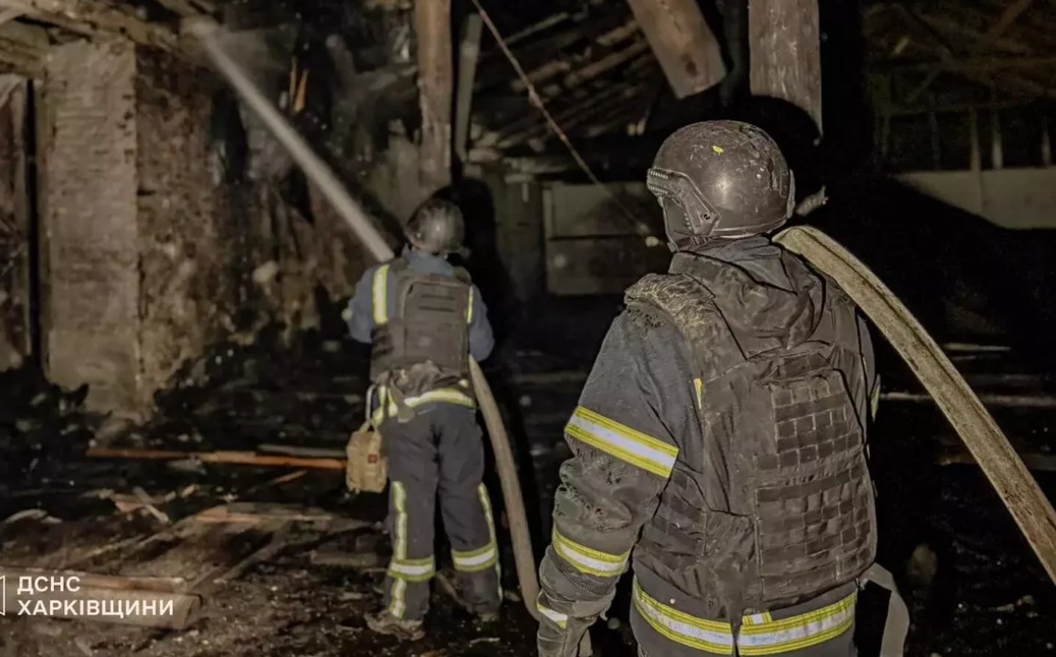 Lính cứu hỏa Ukraine dập tắt đám cháy ở Kharkov. Ảnh: Dịch vụ khẩn cấp Ukraine.