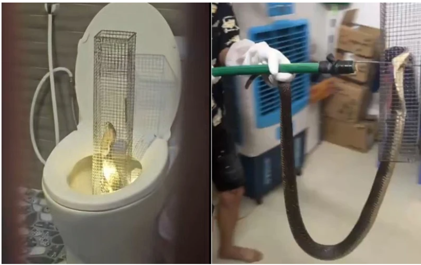 Khoảnh khắc rắn độc chui lên từ bồn cầu, vươn chiếc cổ dài trong chiếc lồng bẫy khiến người xem nổi da gà. Dân mạng để lại nhiều ý kiến tranh cãi xung quanh cảnh tượng rùng mình: