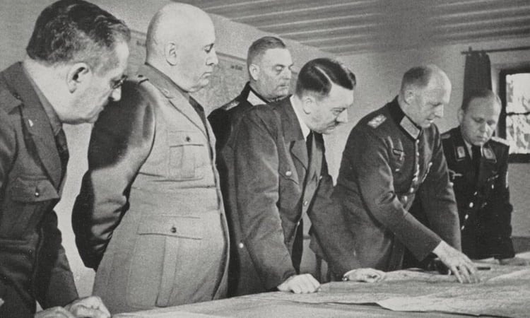 Hitler trong một cuộc họp đánh giá chiến lược tại Hang sói vào tháng 8/1941. Ảnh: De Agostini Picture Library.
