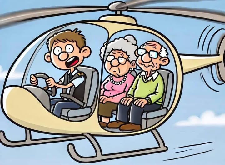 Một cặp vợ chồng già đi hội chợ và người chồng thấy một chuyến đi trực thăng có giá 50 đô la. Ông chồng hỏi vợ :