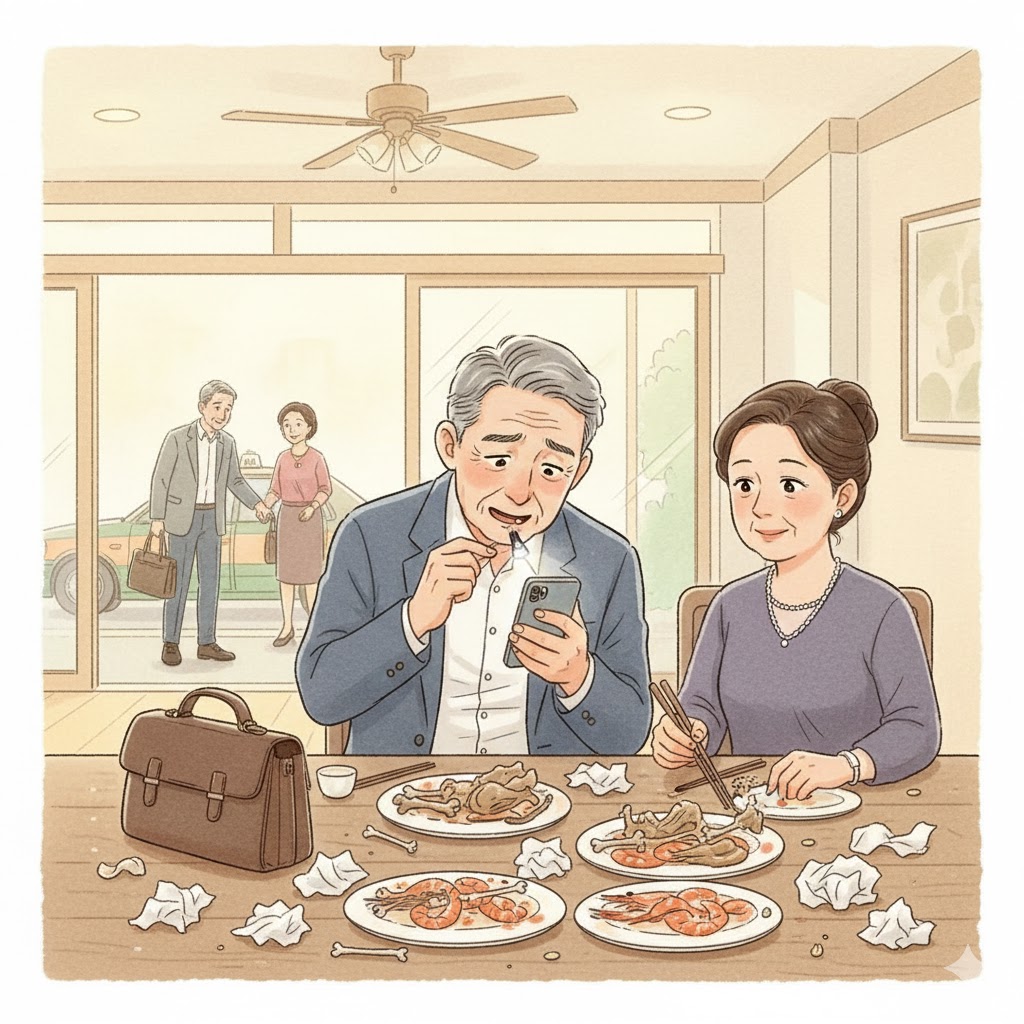 Tiệc tàn. Mặt bàn la liệt xương gà, vỏ tôm, xương cá, giấy ăn khô, ướt. Anh chợt thất sắc, lấy đũa bới tung đống xương các loại trước mặt, lưỡi đẩy qua đẩy lại trong miệng. Anh lôi trong chiếc túi hiệu Louis Vuitton, bỏ điều Cigar, bật lửa, lấy ra một cái gương bé, bật đèn ở điện thoại, soi khắp miệng, quay sang cô. Cái thằng bạn anh bác sĩ răng, nó khẳng định bọc răng cho anh chắc nhất rồi, thế mà vừa gặm miếng đùi gà với một con tôm, bay mất hai cái răng mới chết. May mà phục vụ chưa dọn đống xương, em tìm cùng anh nhé.