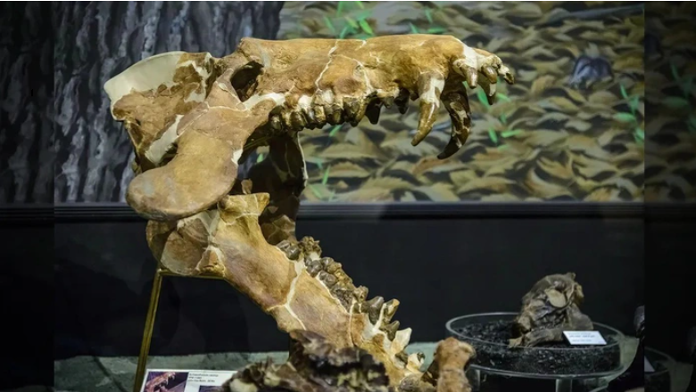 Hộp sọ của một con heo địa ngục được trưng bày tại Đài tưởng niệm Quốc gia John Day Fossil Beds (bang Oregon - Mỹ) - Ảnh: ALAMY