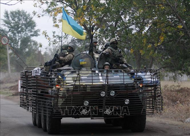 Binh sĩ Ukraine tuần tra tại thành phố Kramatorsk ở vùng Donetsk.