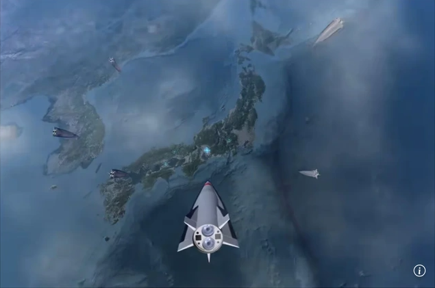 Hình ảnh mô phỏng do Công ty Công nghệ Lingkong Tianxing công bố cho thấy các tên lửa bay thành đội hình hướng về phía Nhật Bản, theo South China Morning Post