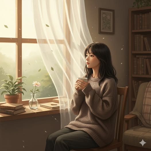Và một buổi sáng nọ, tôi thức dậy, mở cửa sổ, gió ùa vào làm rèm bay nhẹ.