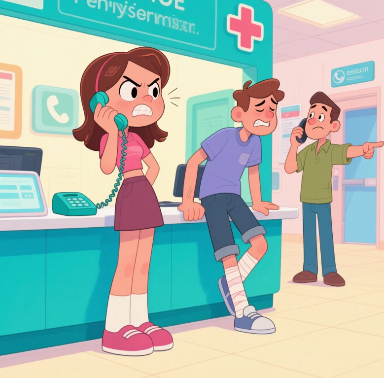 Tại bệnh viện, cảnh chen lấn xếp hàng khiến ai cũng mệt mỏi. Có một cô gái cứ dán mắt vào điện thoại, phía trước đã trống nhưng vẫn đứng ì ra không nhích lên.