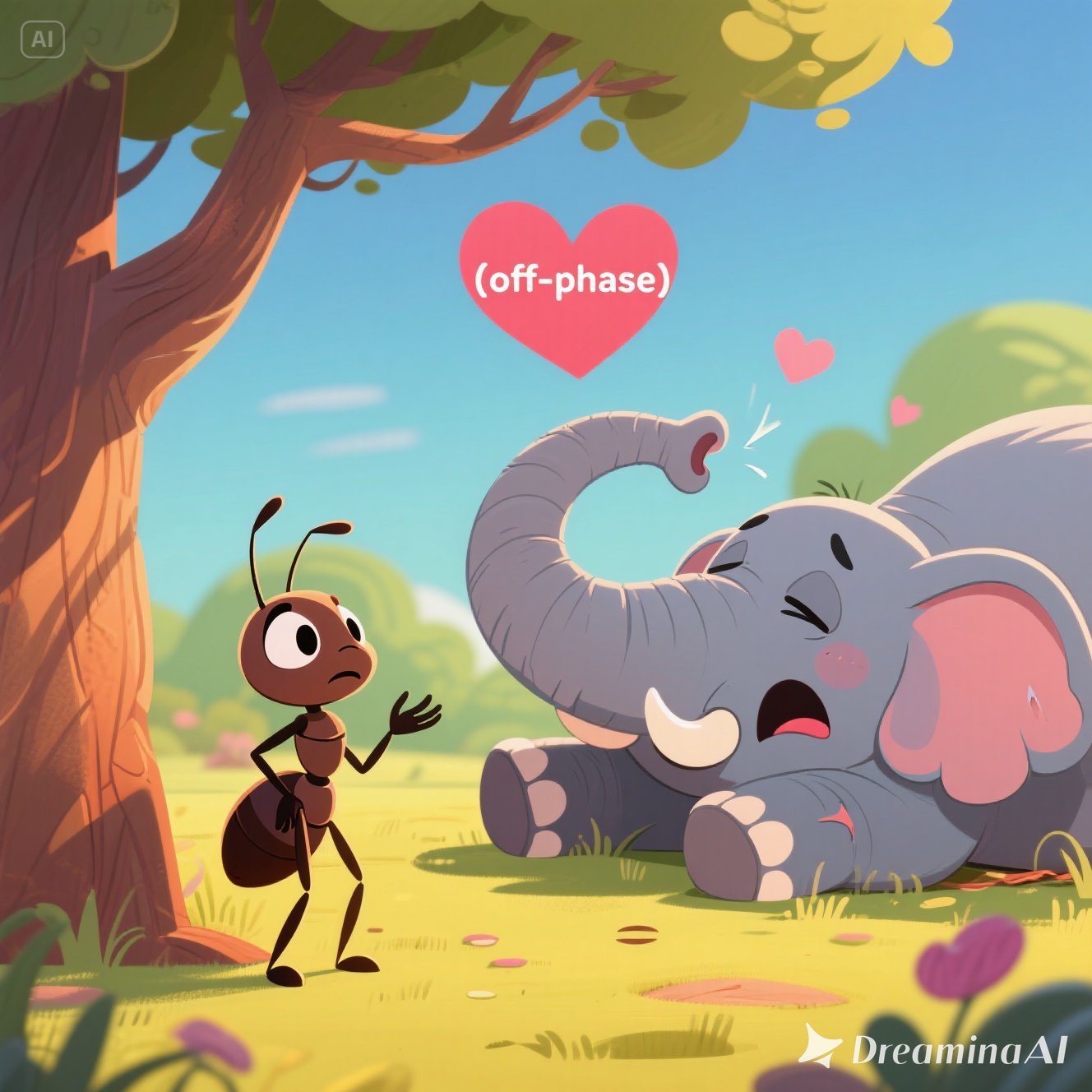 Một hôm đẹp trời, Kiến và Voi ngồi tâm sự dưới tán cây. Kiến bỗng thủ thỉ: – Anh Voi… em có thai với anh rồi…