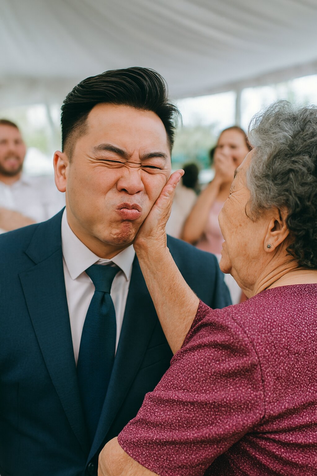 Vài tuần sau, cụ hàng xóm mất, làng tổ chức đám tang. Mình nhớ lại mấy cụ từng huých mình hôm đám cưới… thế là mình cũng huých lại, nói nhỏ: – Đấy… chuẩn bị tới cụ rồi đấy!