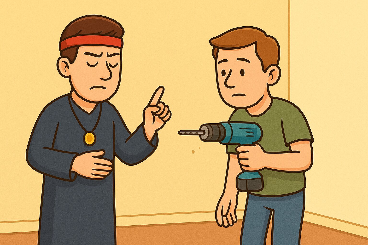 Người bạn tỉnh bơ đáp: – Tôi… khoan một cái lỗ trên tường.