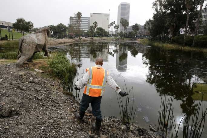 "Hồ hắc ín" La Brea ở bang California - Mỹ, nơi chứa rất nhiều hóa thạch quái vật cổ đại - (Ảnh: LIVE SCIENCE).