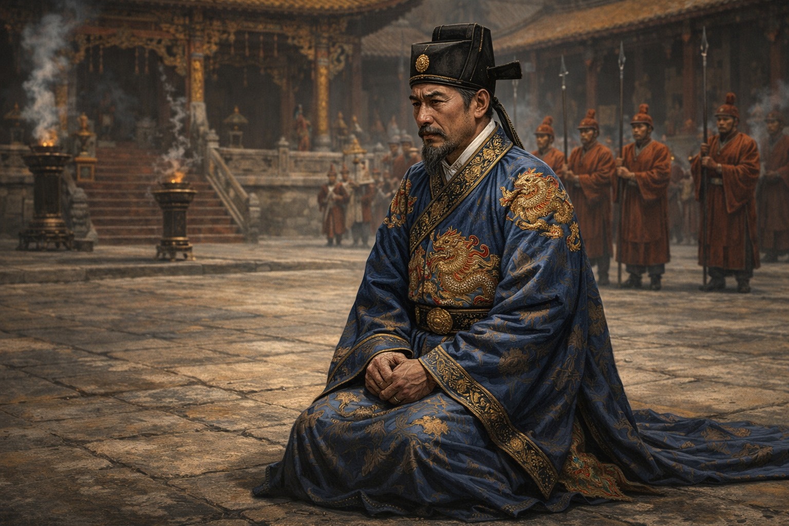 Sứ thần Vũ Trần Thiệu không muốn tiếp tay cho Trịnh Sâm cướp ngôi nhà Lê. Ảnh: Chat GPT.